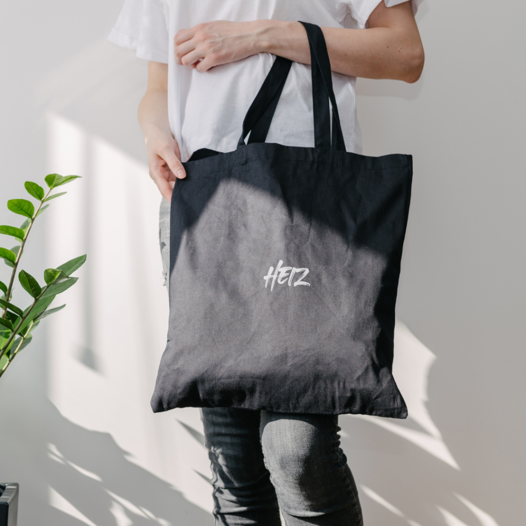 Poltsa praktiko eta arina, HEIZ logoarekin. Eguneroko erabilerarako perfektua: erosketak, liburuak edo eguneroko tresnak eramateko.